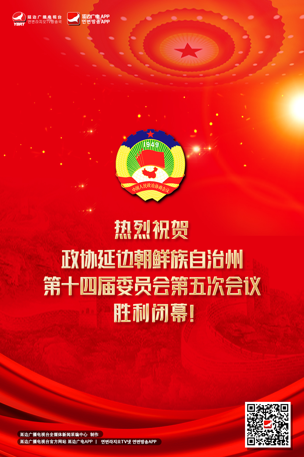 热烈祝贺政协延边朝鲜族自治州第十四届委员会第五次会议胜利闭幕!