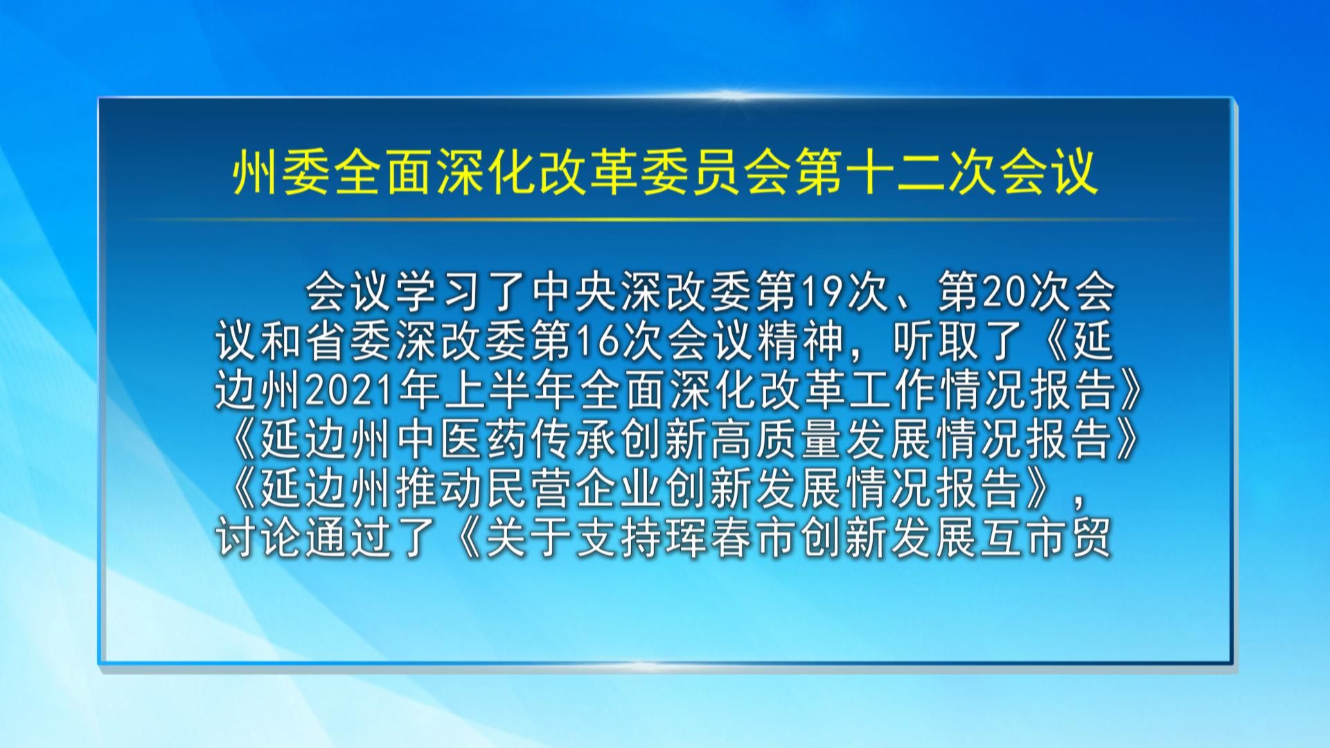 【视频新闻】州委全面深化改革委员会召开第十二次会议