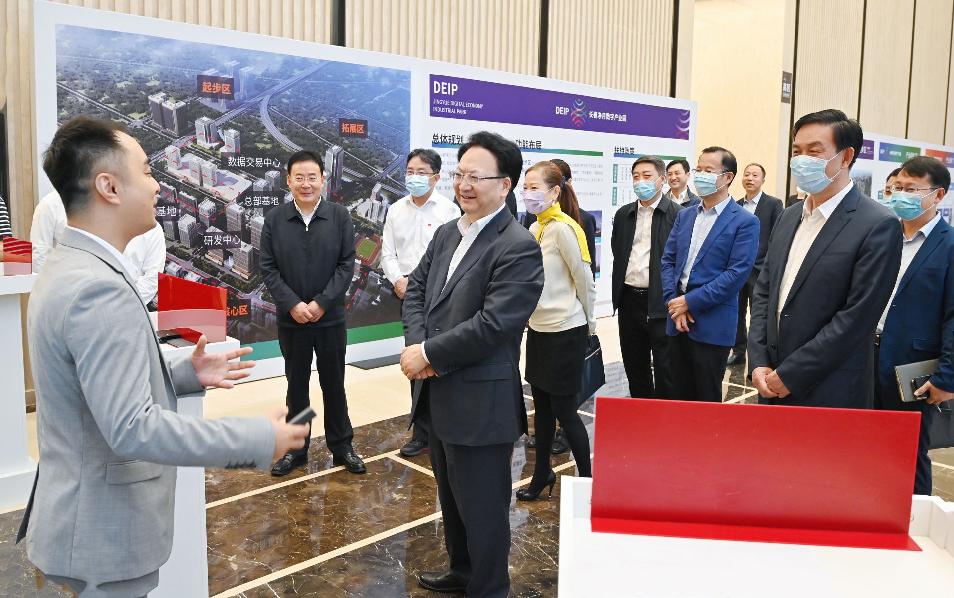 6月10日,省委书记景俊海到长春净月高新区调研,在数字经济产业园详细询问园区规划建设及企业吸引人才等情况