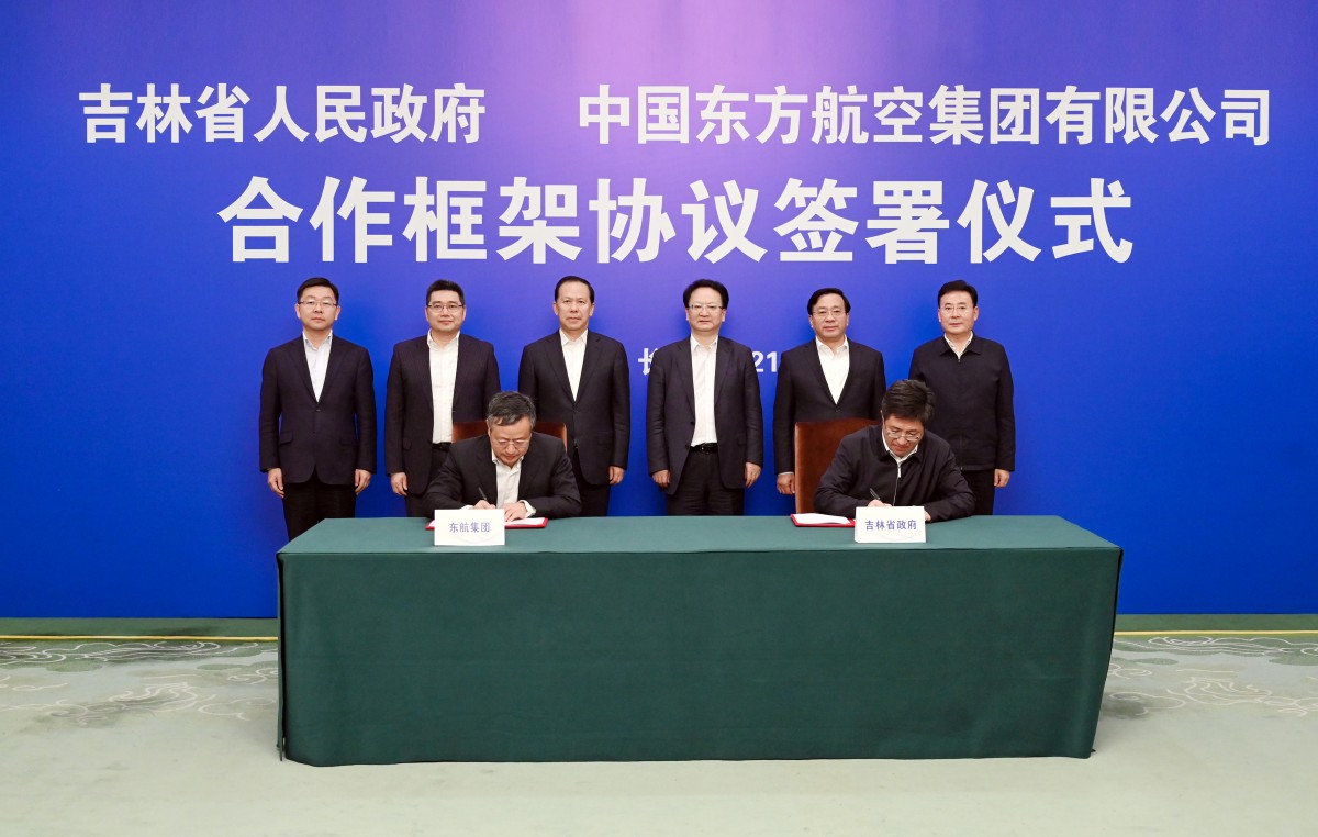 6月4日,省委书记景俊海,省委副书记、省长韩俊一起在长春会见前来参加央企助力吉林振兴发展系列活动的中国东方航空集团党组书记、董事长刘绍勇一行,并共同见证省政府与中国东方航空集团签署合作框架协议