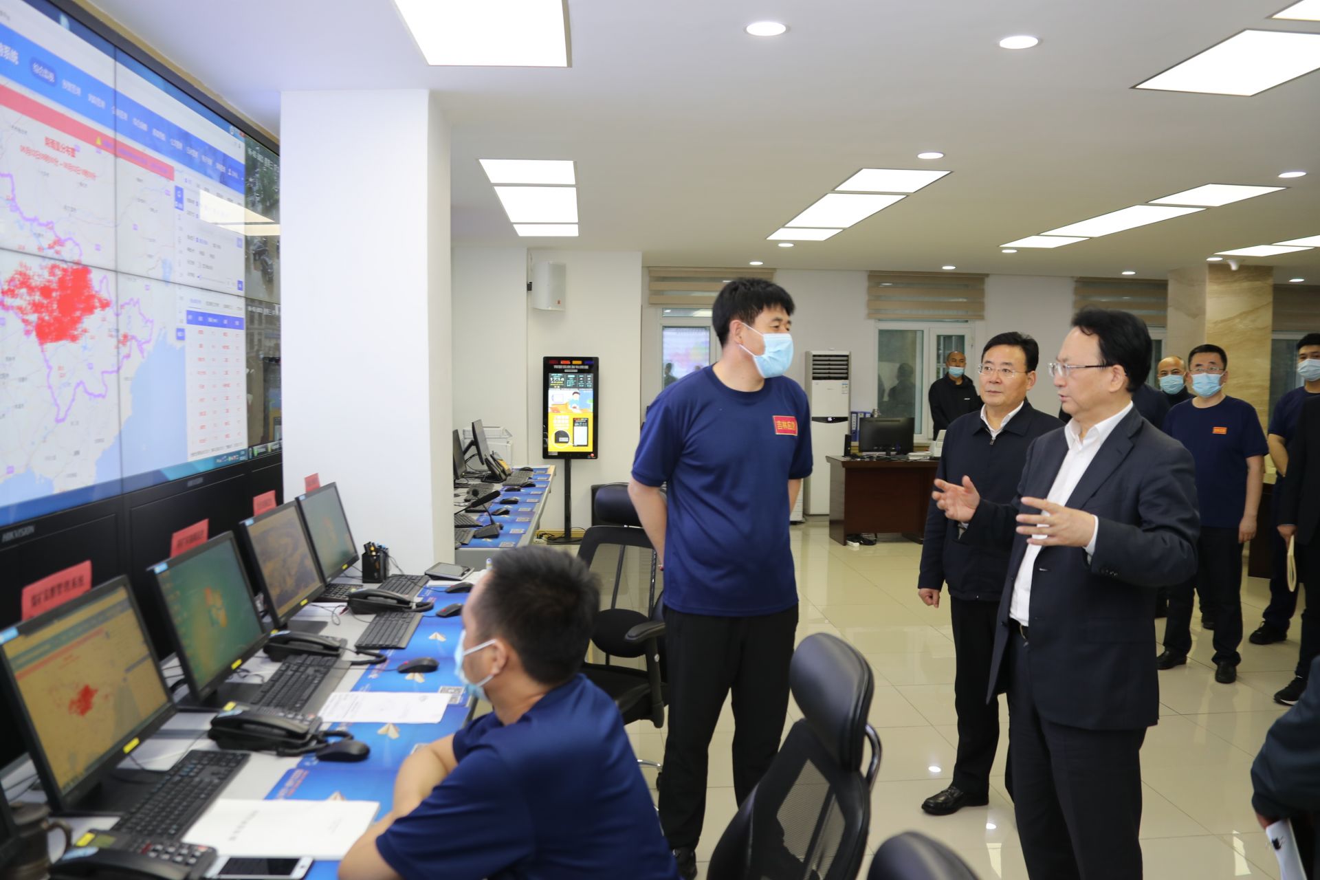 6月2日下午,省委书记景俊海来到省应急管理厅,调度部署强降雨天气防范应对工作,在指挥中心通过卫星云图详细了解全省实时降雨情况