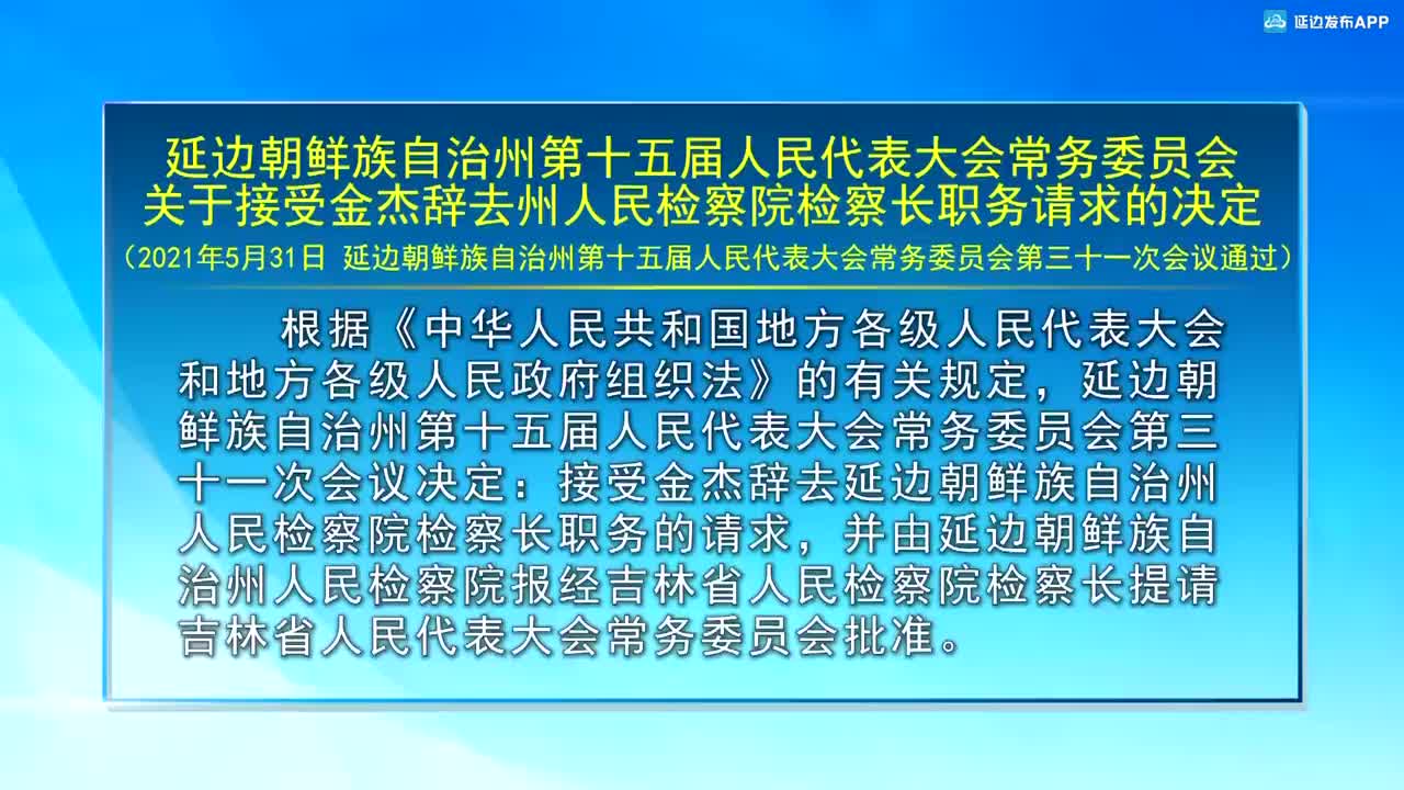 【视频新闻】延边朝鲜族自治州第十五届人民代表大会常务委员会关于接受金杰辞去州人民检察院检察长职务请求的决定