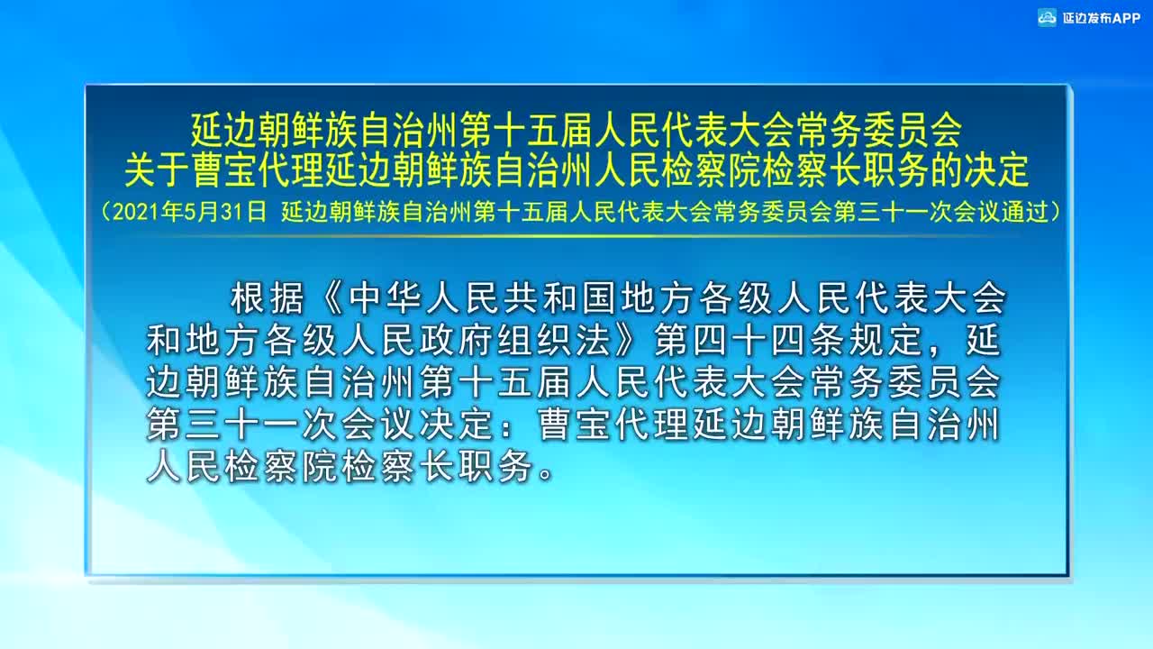 【视频新闻】延边朝鲜族自治州第十五届人民代表大会常务委员会关于曹宝代理延边朝鲜族自治州人民检察院检察长职务的决定