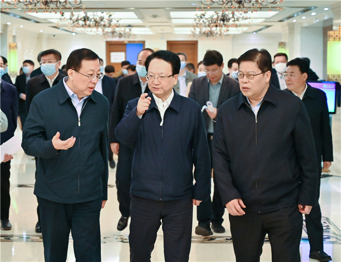 4月14日,省委书记景俊海,省委副书记、省长韩俊一起率吉林省党政代表团到北京大学推进省校合作工作,在碳基电子研究中心深入了解新技术应用前景