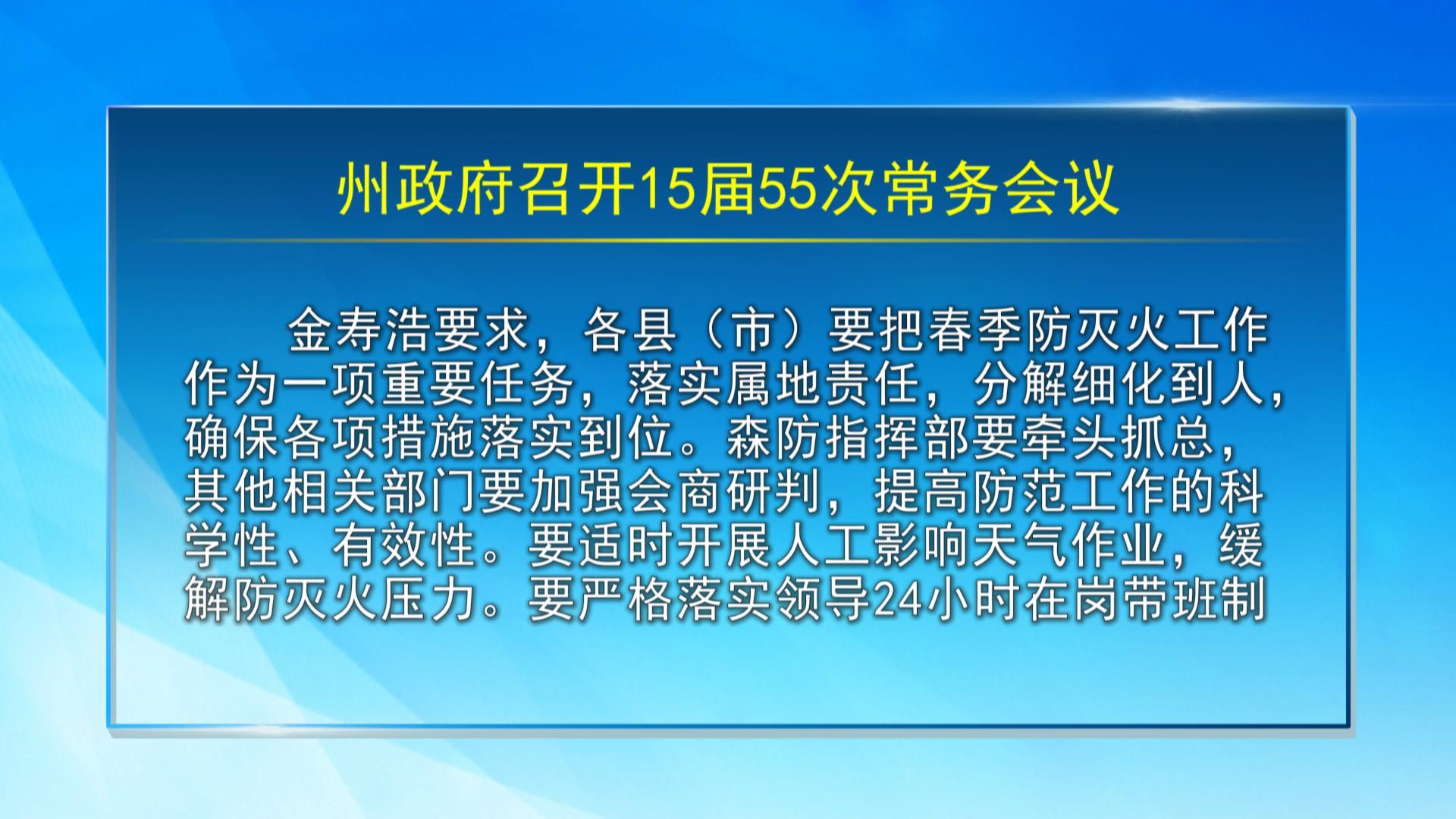 【视频新闻】州政府召开15届55次常务会议
