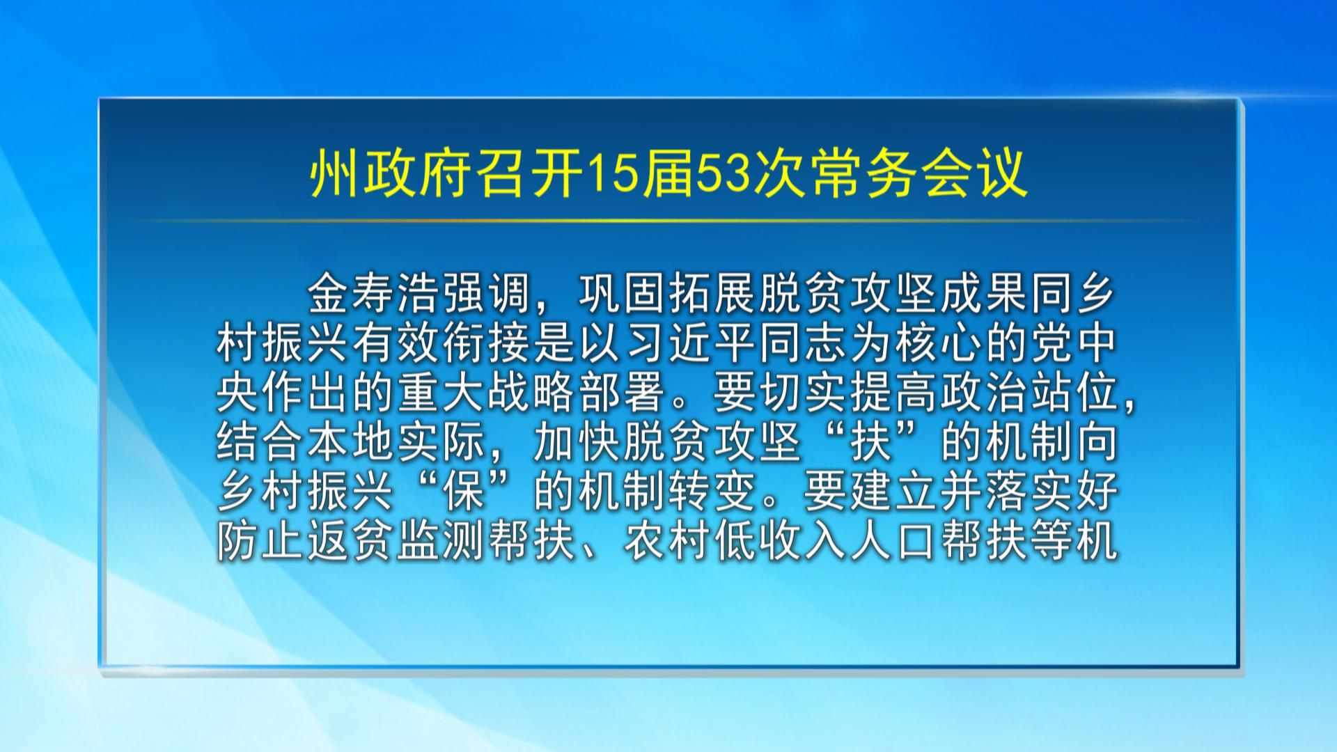 【视频新闻】州政府召开15届53次常务会议