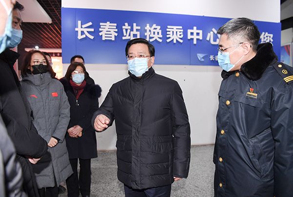 1月21日,韩俊在长春火车站北广场交通枢纽检查疫情防控工作