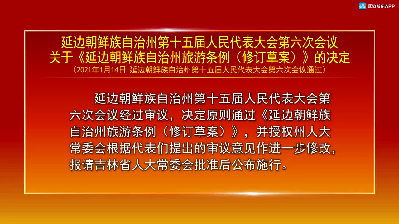【视频新闻】延边朝鲜族自治州第十五届人民代表大会第六次会议关于《延边朝鲜族自治州旅游条例(修订草案)》的决定