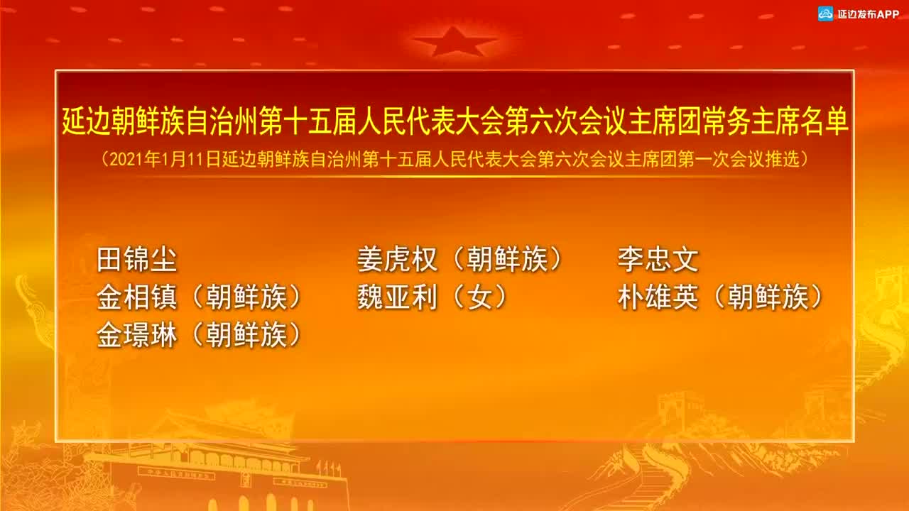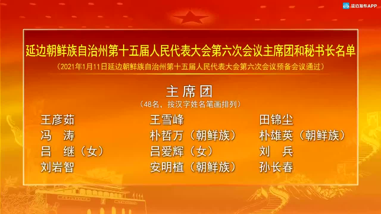 【视频新闻】延边朝鲜族自治州第十五届人民代表大会第六次会议主席团和秘书长名单