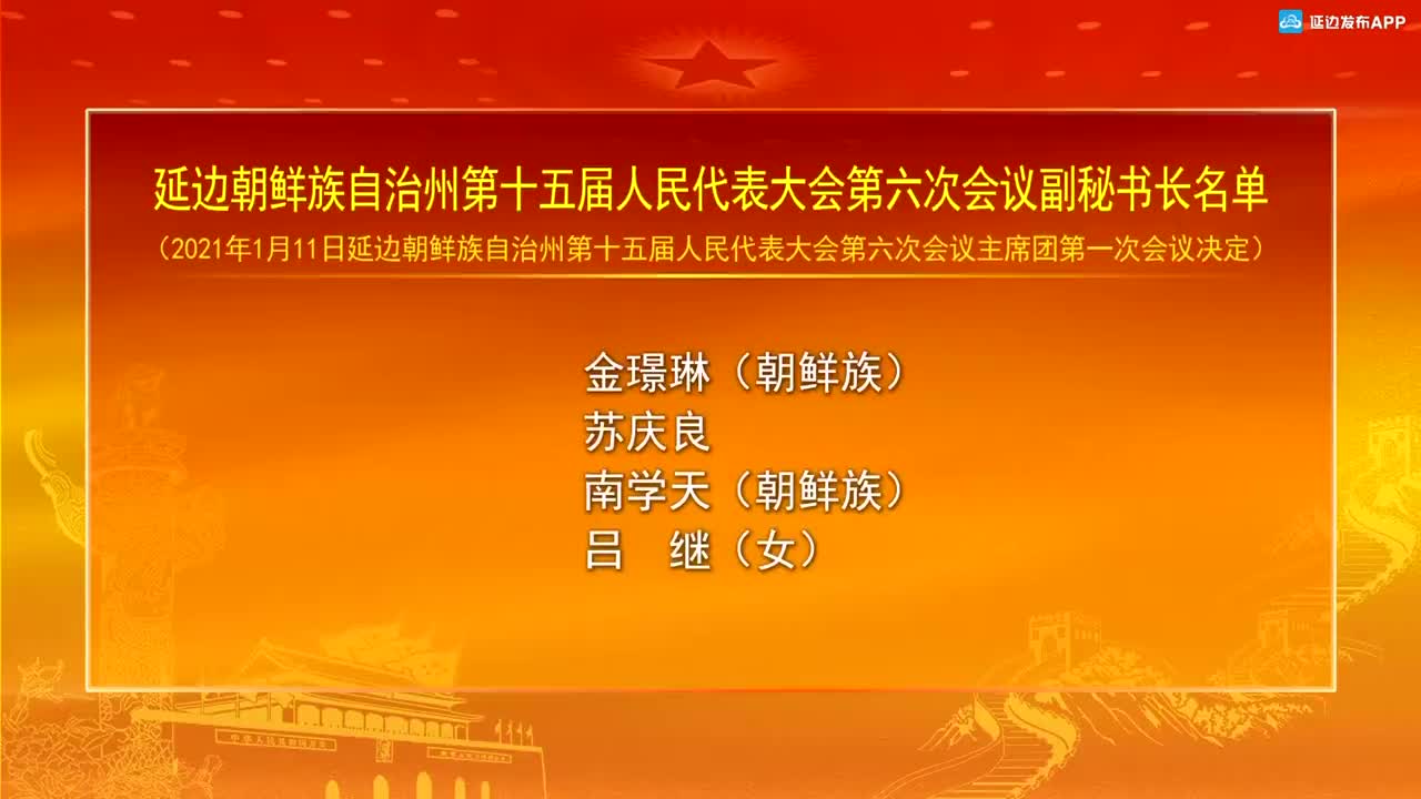 【视频新闻】延边朝鲜族自治州第十五届人民代表大会第六次会议副秘书长名单