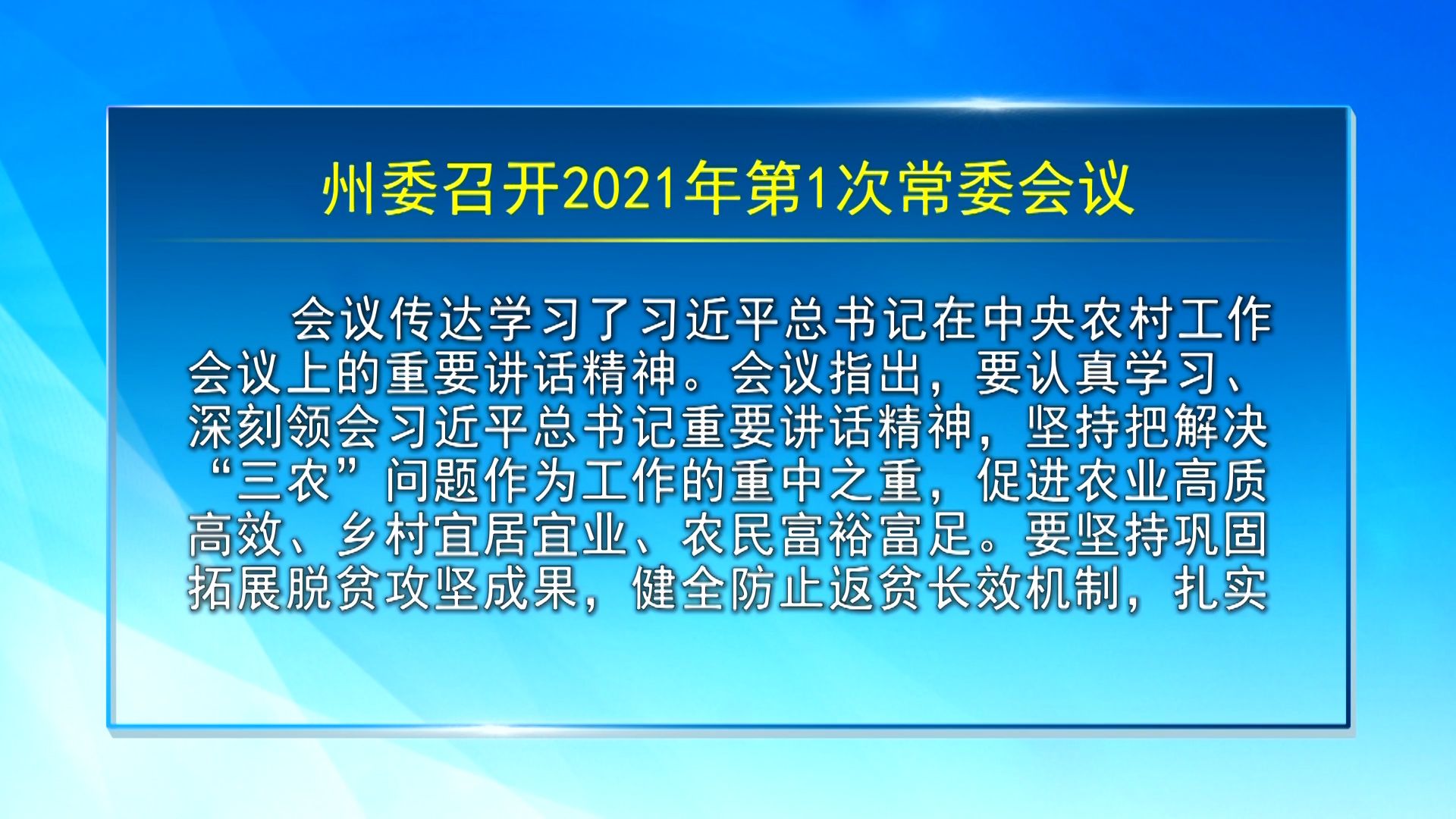 【视频新闻】州委召开2021年第1次常委会议