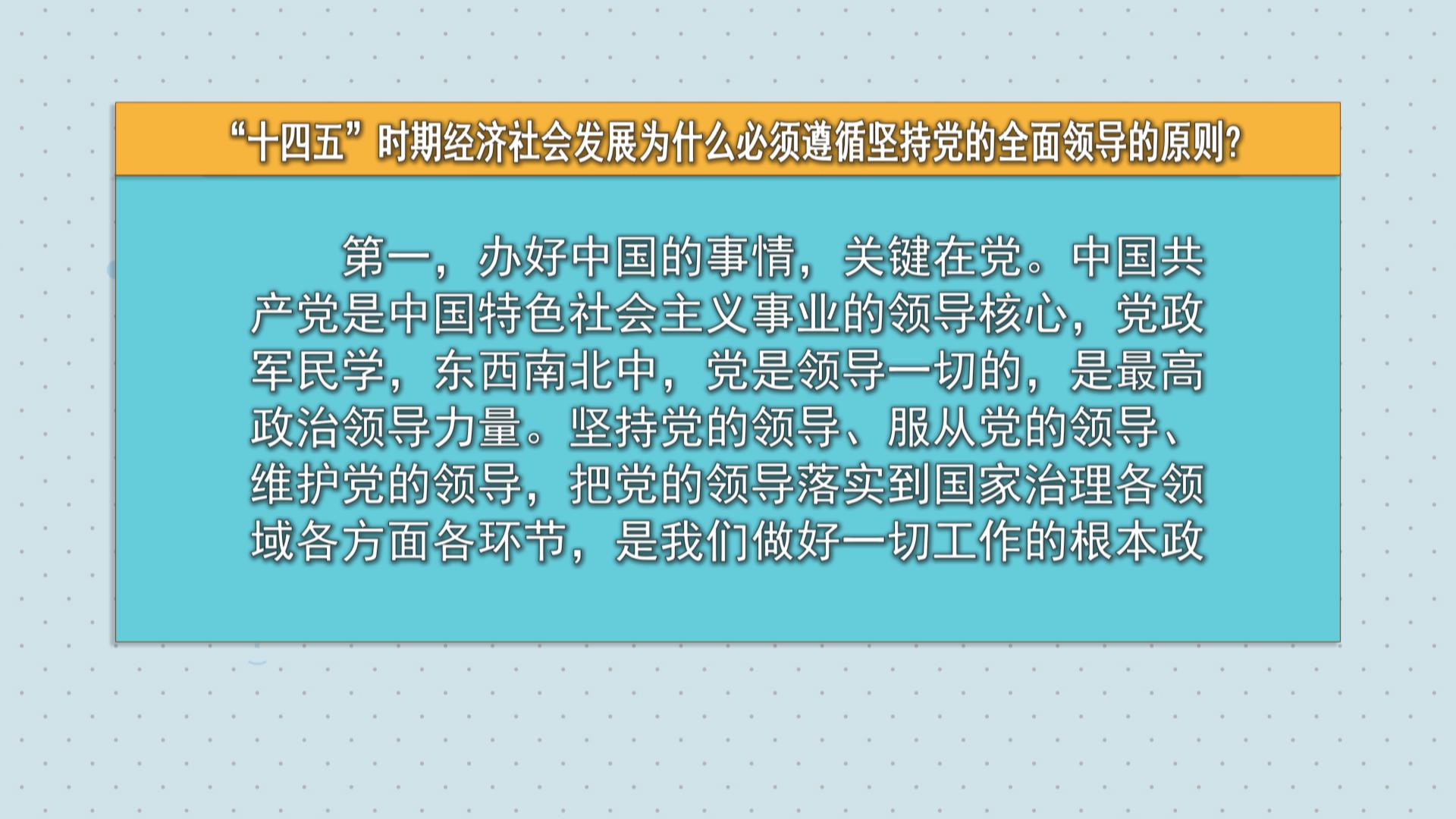【视频新闻】“十四五”时期经济社会发展为什么必须遵循坚持党的全面领导的原则?