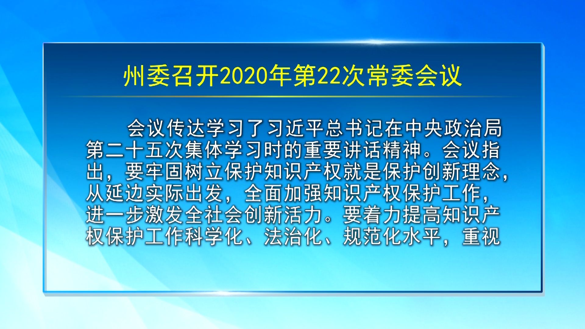 【视频新闻】州委召开2020年第22次常委会议