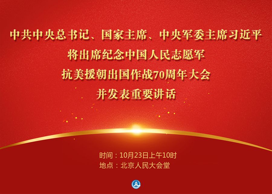 纪念中国人民志愿军抗美援朝出国作战70周年大会23日上午在京隆重举行 习近平将出席大会并发表重要讲话