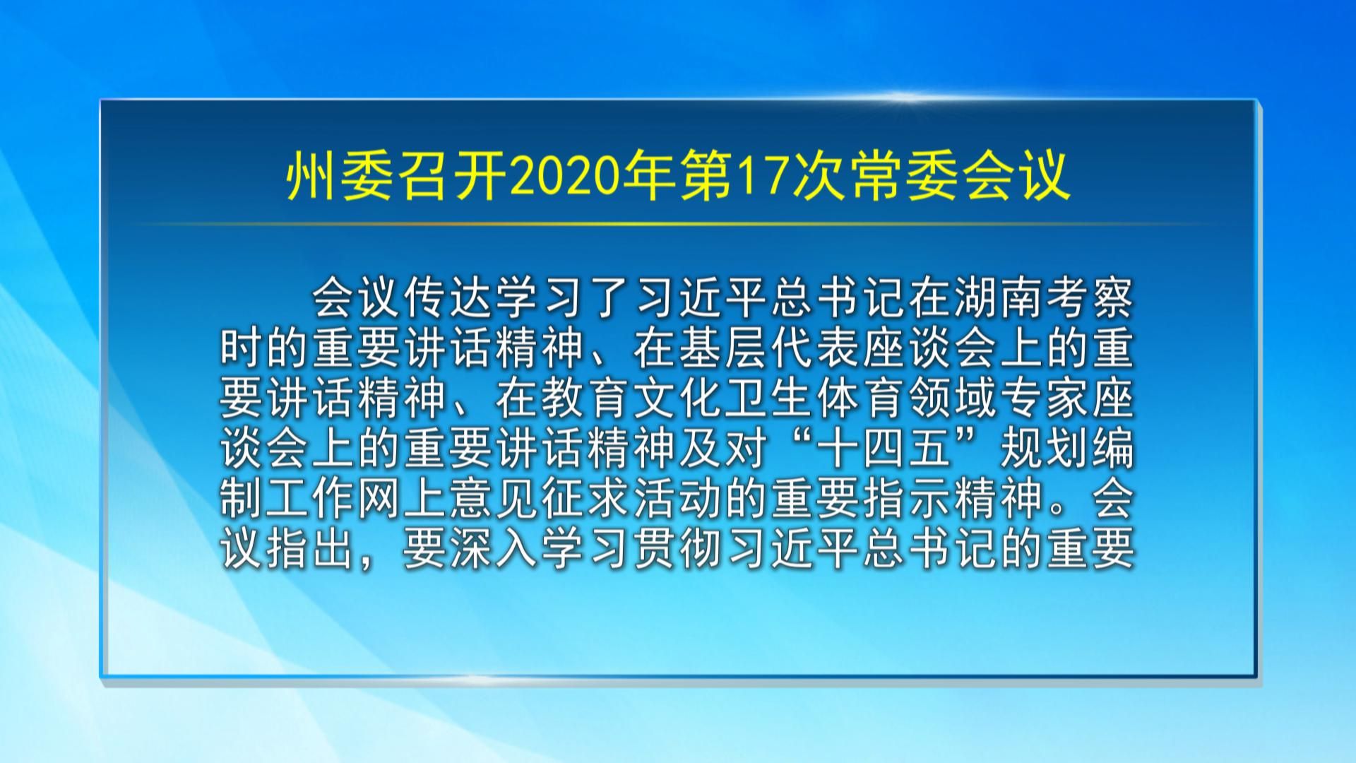 【视频新闻】州委召开2020年第17次常委会议