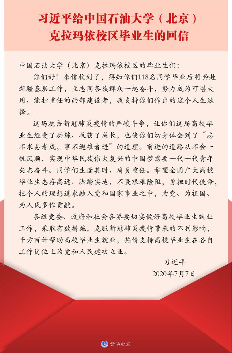 这封情真意切的信是写给中国石油大学(北京)克拉玛依校区118名毕业生的,也是写给全国千千万万青年学子的