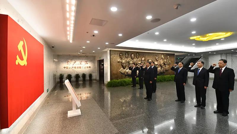 2017年10月31日党的十九大闭幕仅仅一周习近平总书记带领新一届中央政治局常委同志来到上海中共一大会址和浙江嘉兴南湖红船在鲜红的党旗前举起右手重温入党誓词中共一大会址 嘉兴南湖红船中国共产党的梦想在这里起航为中国人民谋幸福为中华民族谋复兴中国共产党...