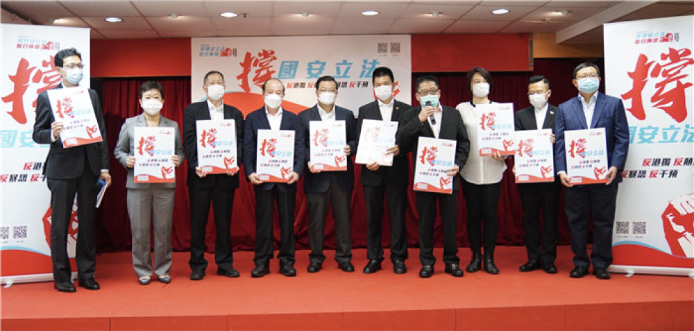 6月1日,香港各界“撑国安立法”联合阵线召集人与嘉宾出席记者会