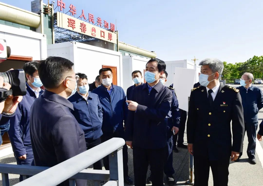 5月20日,省委常委、州委书记田锦尘就深入贯彻习近平总书记关于东北疫情防控的重要指示精神,全面开展常态化疫情防控措施漏洞隐患大排查到珲春市进行督导检查
