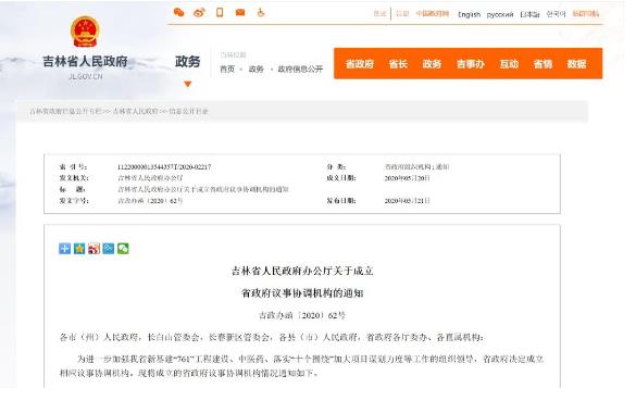 吉林省成立省政府议事协调机构!