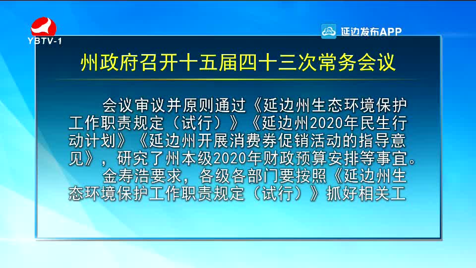 州政府召开十五届四十三次常务会议