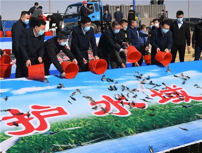 4月13日,省委书记巴音朝鲁在松原市调研查干湖生态保护工作,并参加义务植树
