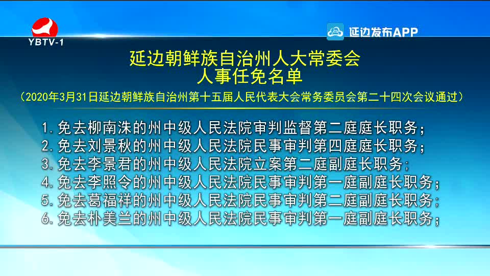 延边朝鲜族自治州人大常委会人事任免名单