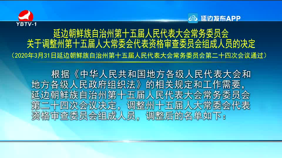 延边朝鲜族自治州第十五届人民代表大会常务委员会关于调整州第十五届人大常委会代表资格审查委员会组成人员的决定