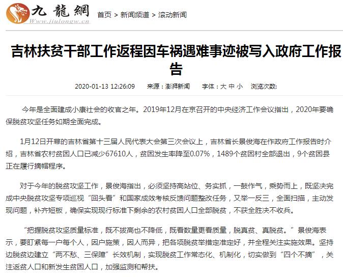延边扶贫干部工作返程因车祸遇难事迹被写入政府工作报告