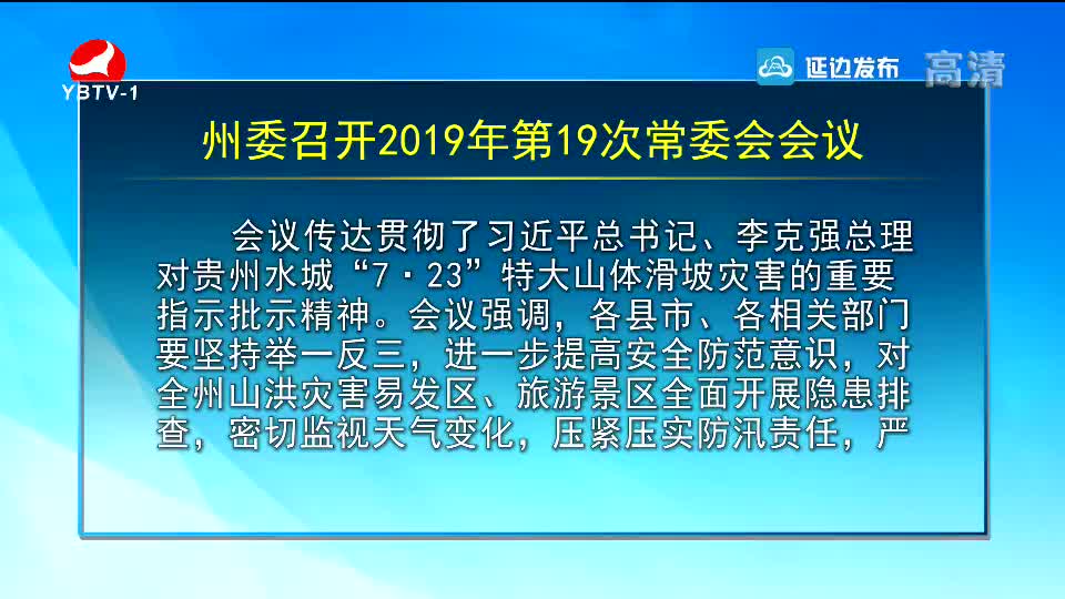 州委召开2019年第19次常委会会议