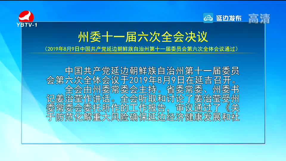 中共延边州委十一届六次全体会议召开