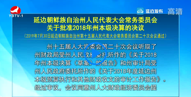 延边朝鲜族自治州人民代表大会常务委员会关于批准2018年州本级决算的决议