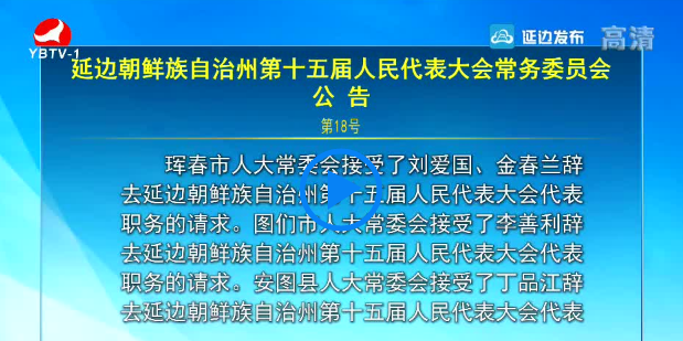 延边朝鲜族自治州第十五届人民代表大会常务委员会公告