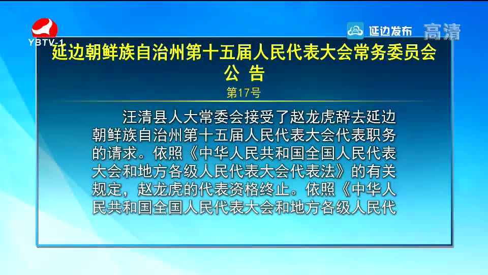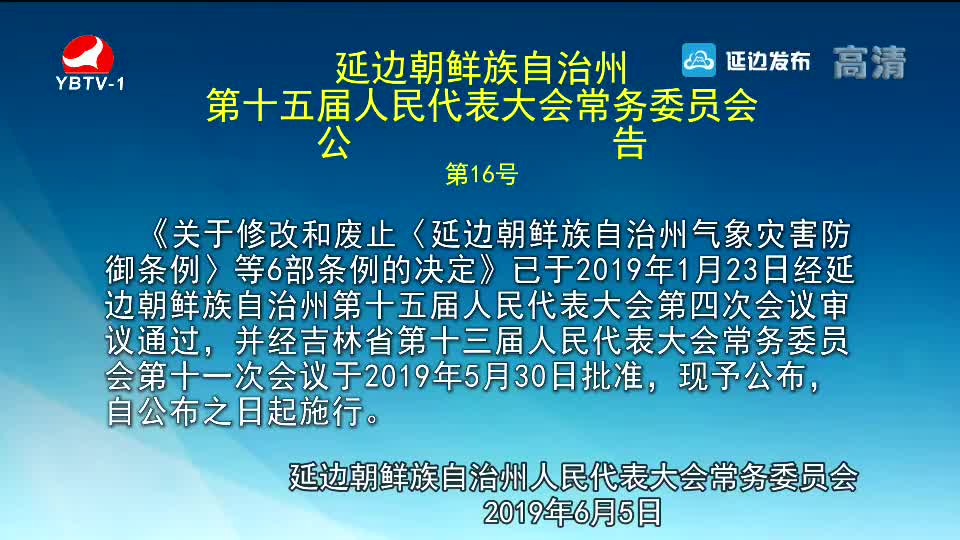 延边朝鲜族自治州第十五届人民代表大会常务委员会公告