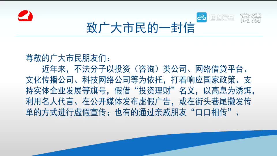 州防范和处置非法集资工作领导小组办公室致广大市民的一封信