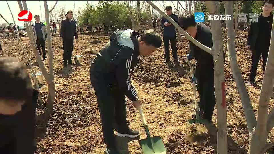 姜治莹 金寿浩与干部群众参加义务植树活动