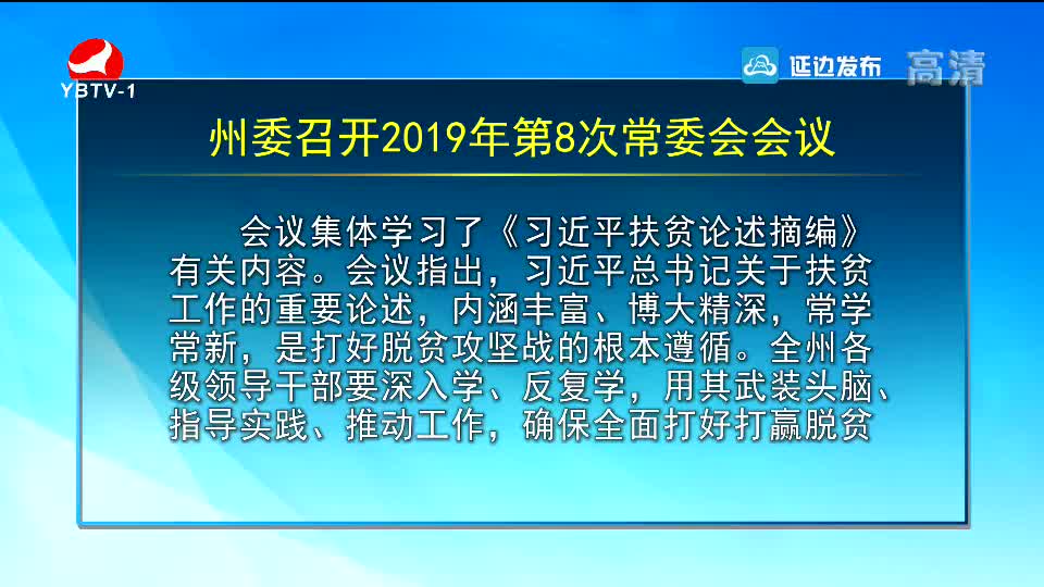 州委召开2019年第8次常委会会议