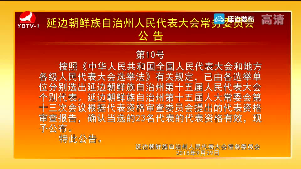 延边朝鲜族自治州人民代表大会常务委员会公告