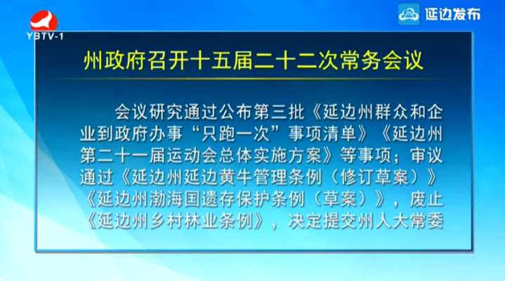 州政府召开十五届二十二次常务会议