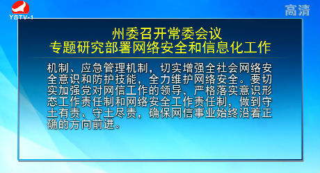 州委召开常委会议专题研究部署网络安全和信息化工作