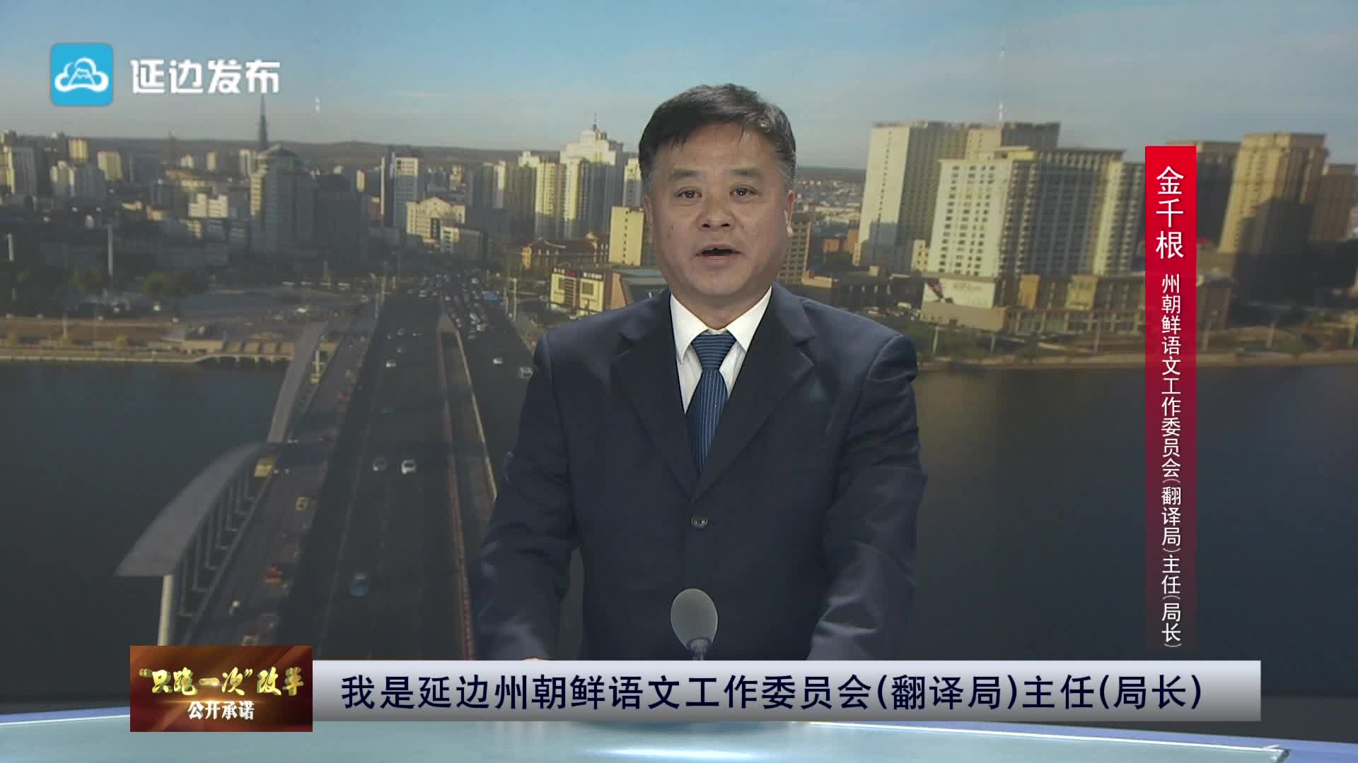 州朝鲜语文工作委员会(翻译局)主任(局长)金千根承诺“只跑一次”改革服务事项