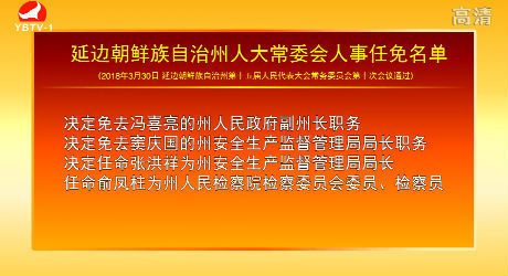 延边朝鲜族自治州人大常委会人事任免名单