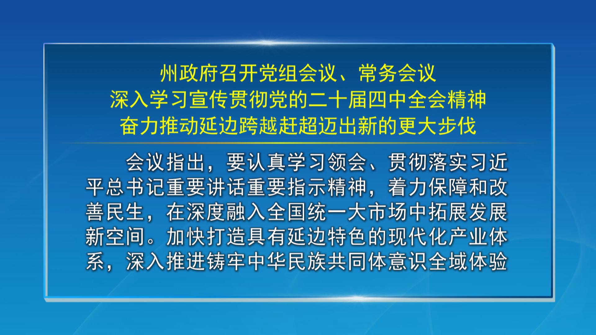 【视频新闻】州政府召开党组会议、常务会议 深入学习宣传贯彻党的二十届四中全会精神 奋力推动延边跨越赶超迈出新的更大步伐