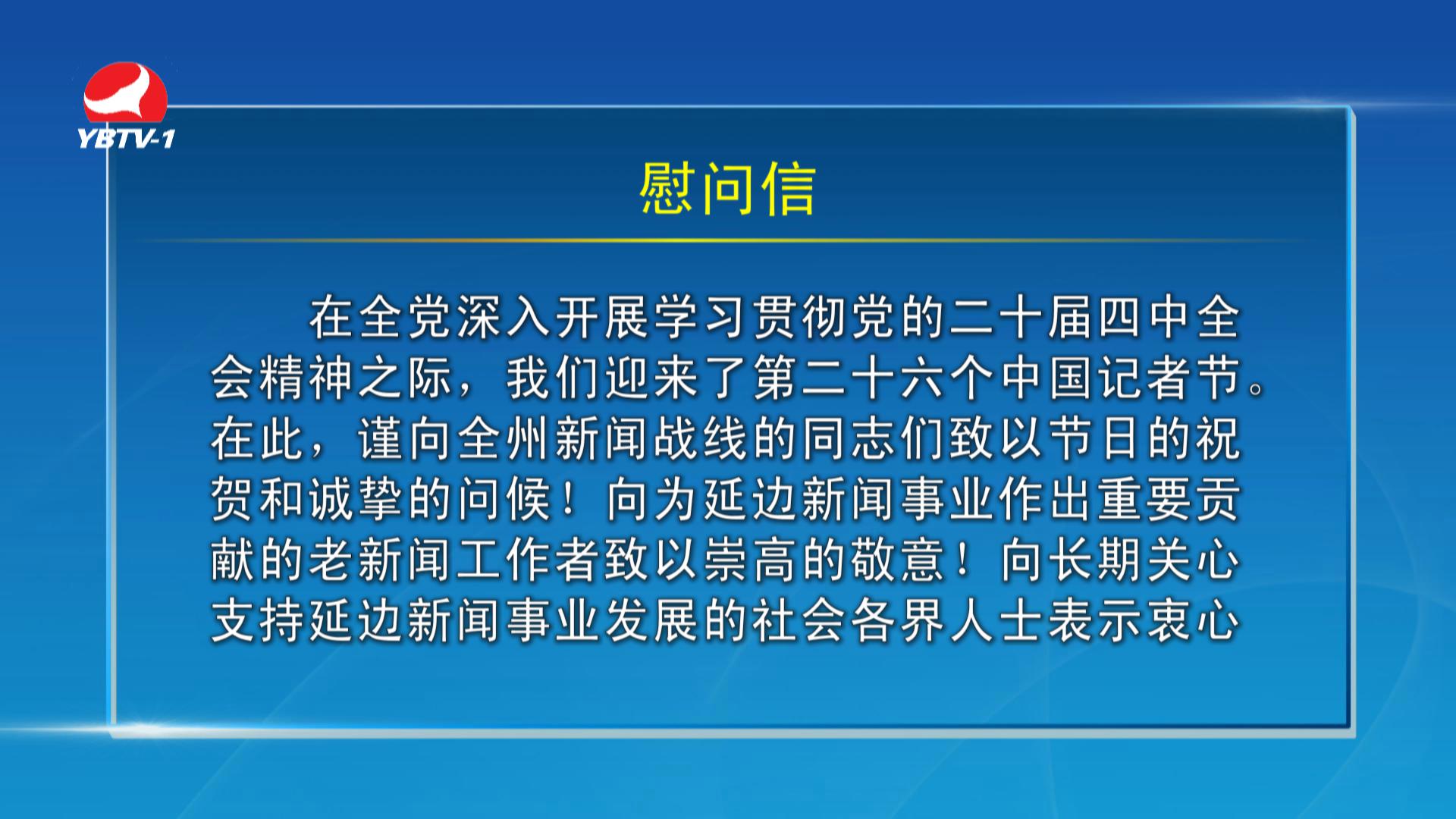 【视频新闻】中共延边州委宣传部、延边新闻工作者协会向全州广大新闻工作者发出慰问信