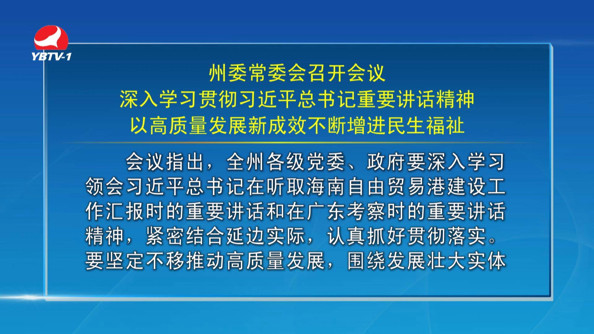 【视频新闻】州委常委会召开会议 深入学习贯彻习近平总书记重要讲话精神 以高质量发展新成效不断增进民生福祉