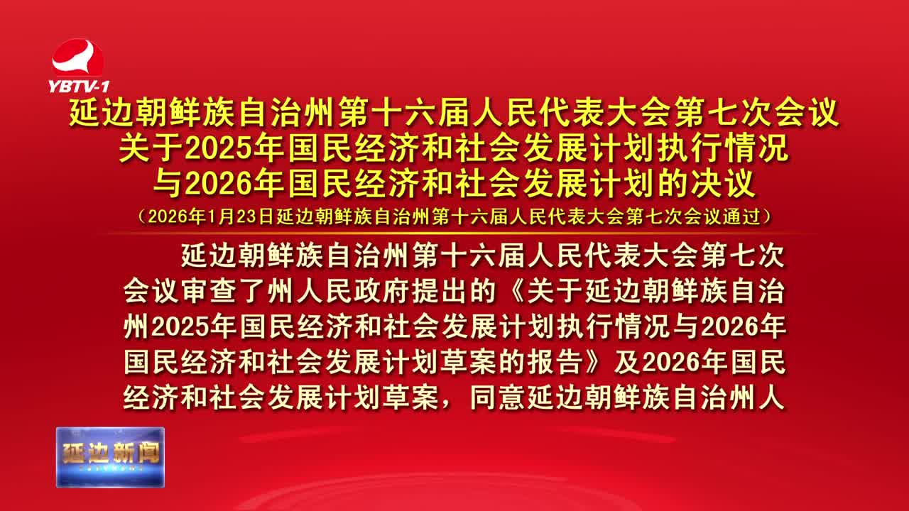 延边朝鲜族自治州第十六届人民代表大会第七次会议关于2025年国民经济和社会发展计划执行情况与2026年国民经济和社会发展计划的决议