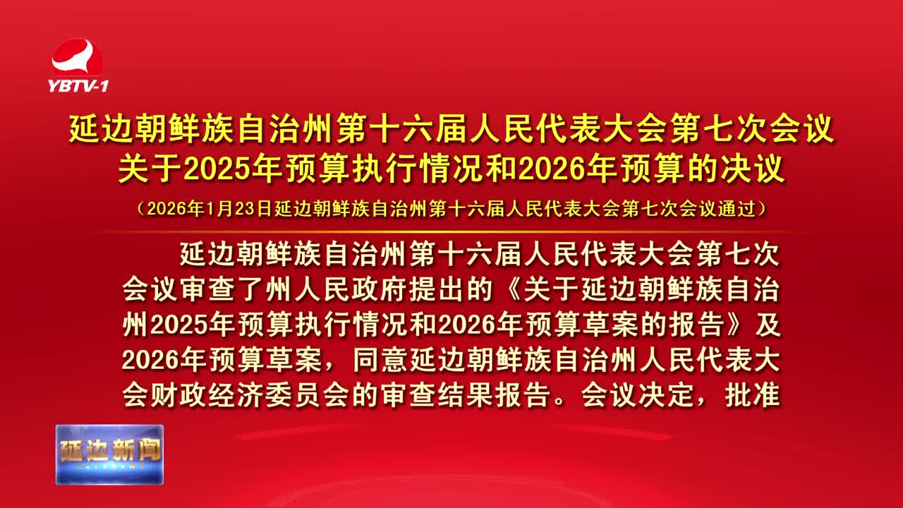 延边朝鲜族自治州第十六届人民代表大会第七次会议关于2025年预算执行情况和2026年预算的决议