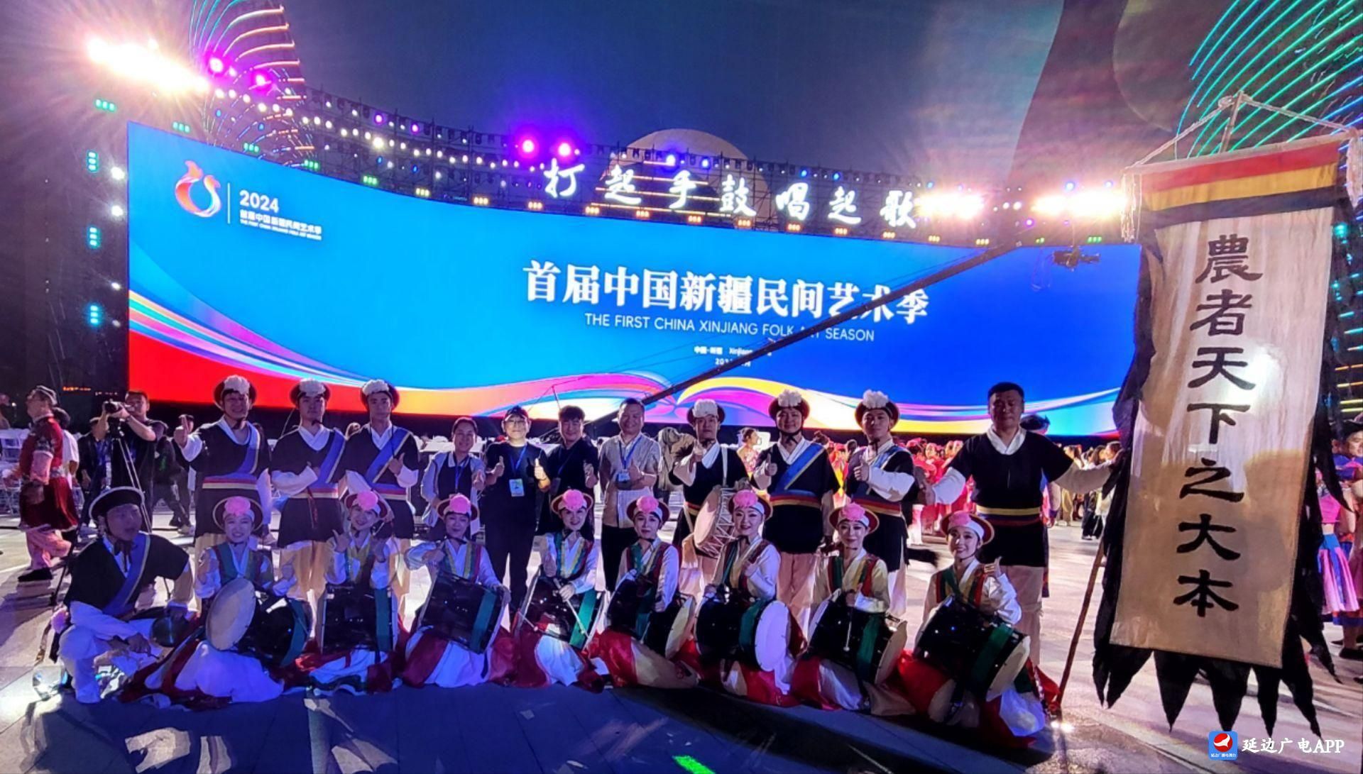首届中国新疆民间艺术季启动 延边朝鲜族演绎农乐舞展现喜庆丰收景象