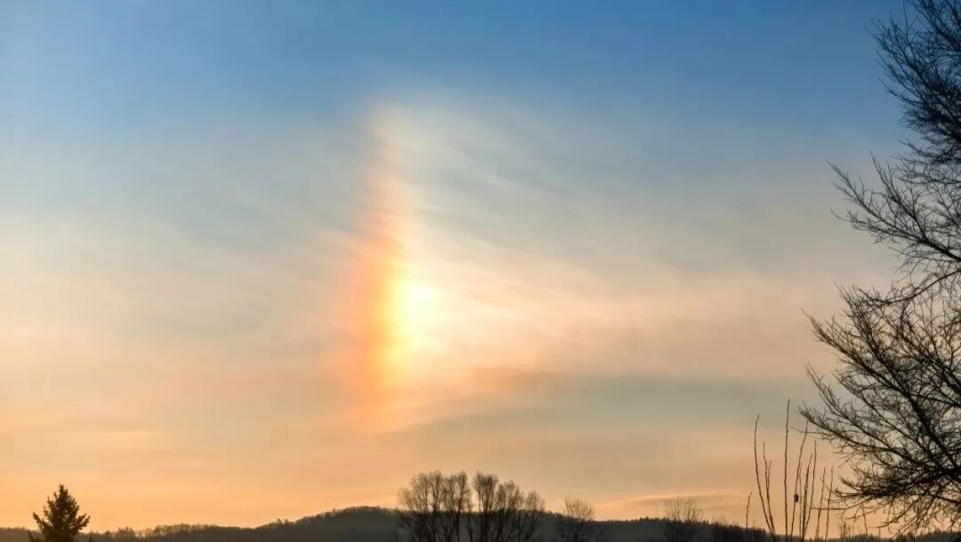安图明月湖惊现“彩虹柱”,自然奇观点亮冬日湖景