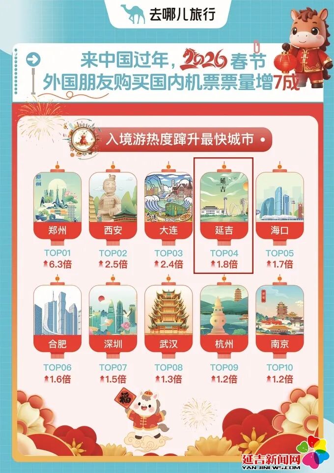 “史上最长春节假期”入境游热度蹿升最快城市 延吉排第四